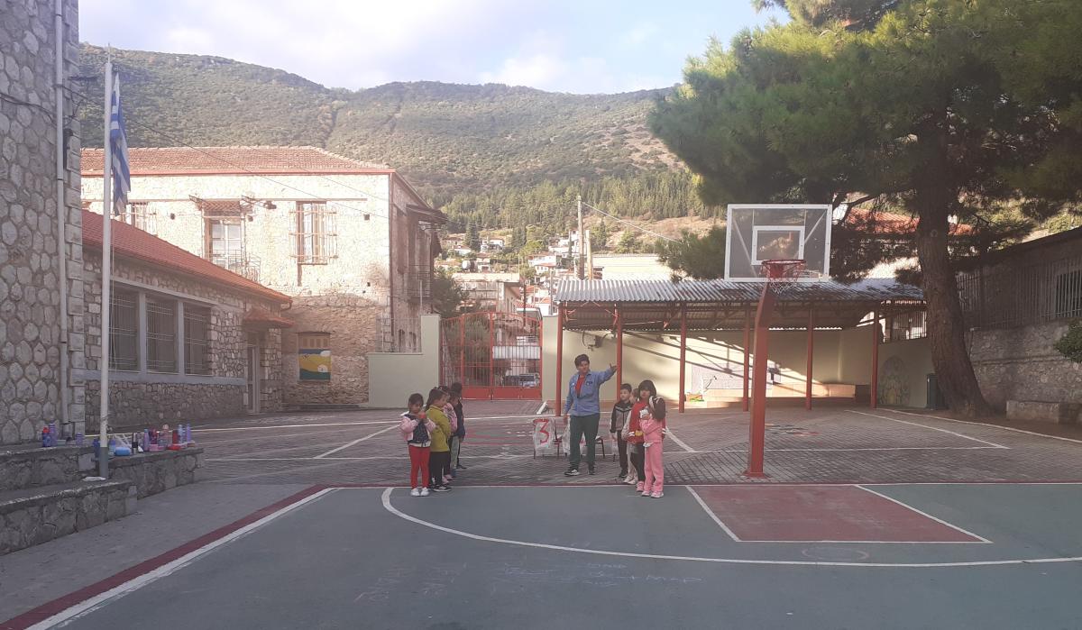 Η εκπαιδευτικός Φυσικής Αγωγής κα Βιολέττα Βαφιά και οι εκπαιδευτικοί του Σχολείου